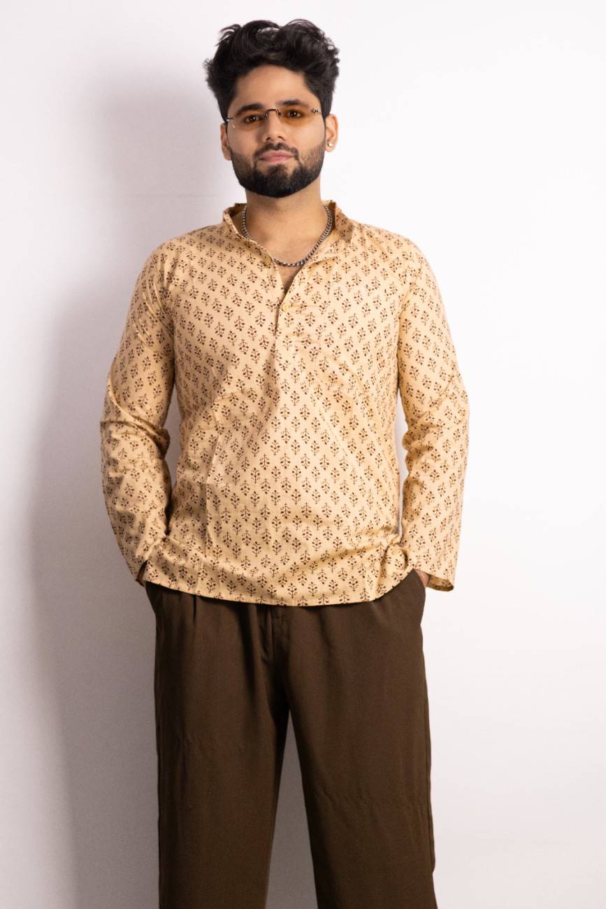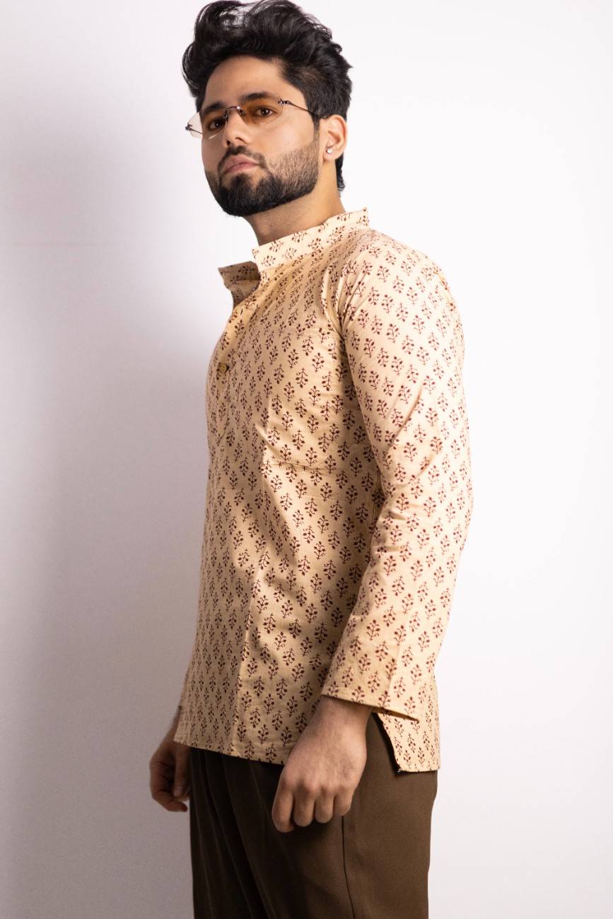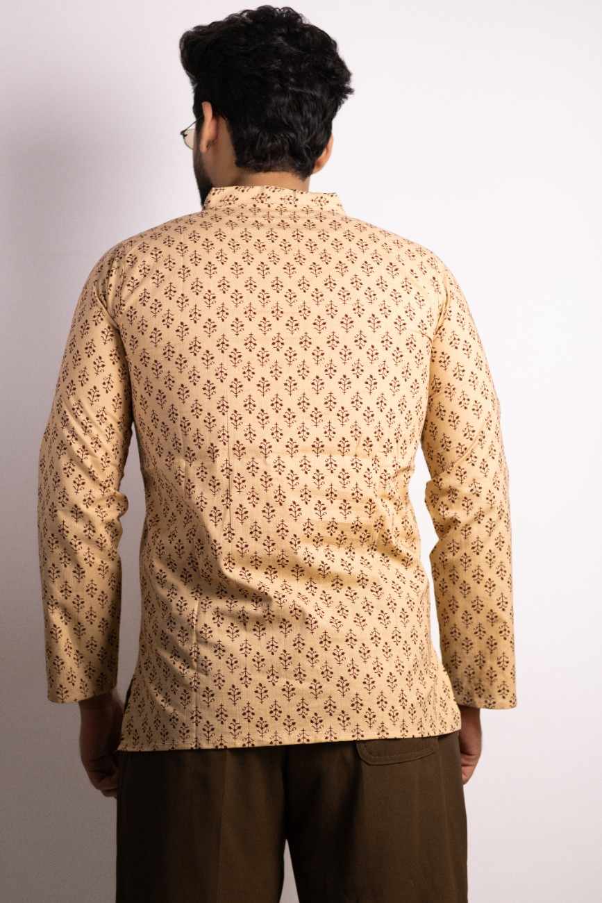 Home / Men / Ethnic Wear /Short Kurtas/ Beige Floral Printed Short Kurta