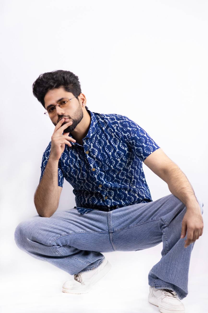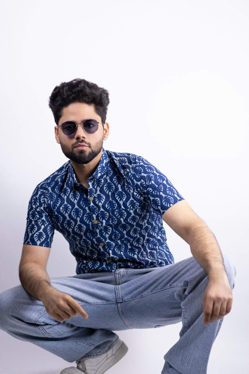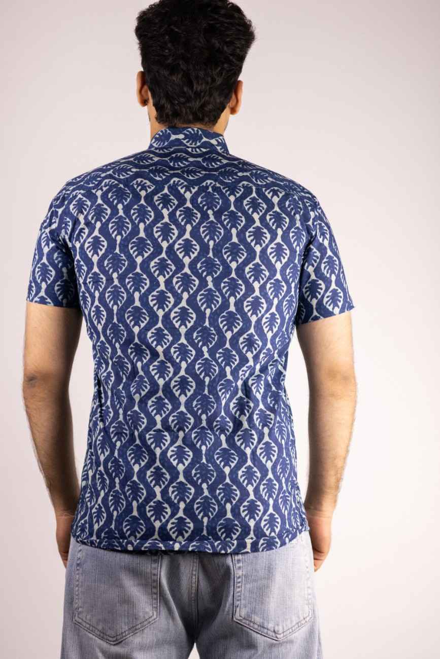 Home / Men / Western Wear /Shirts/ Blue Leaf Half Sleeves Shirt