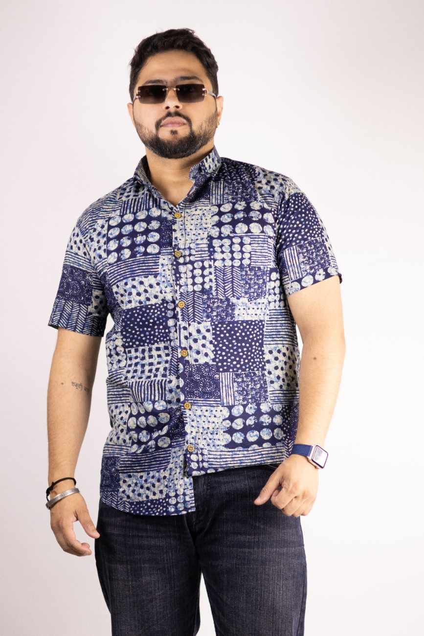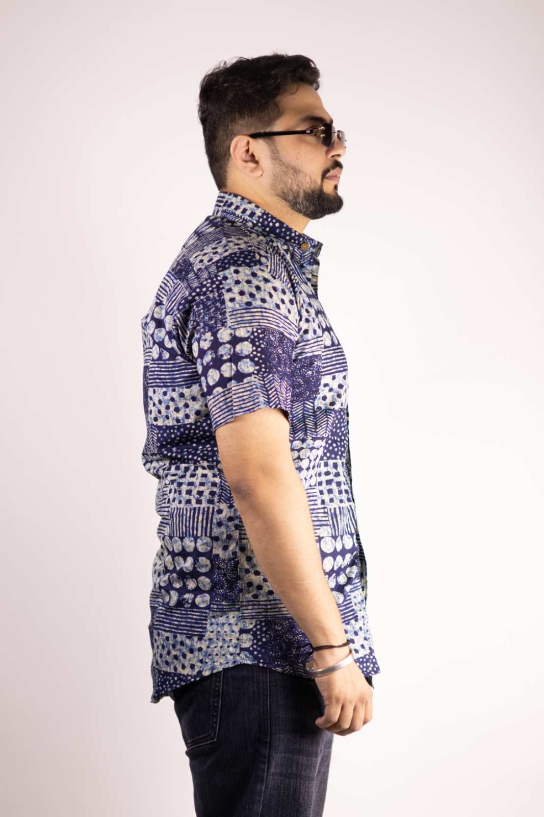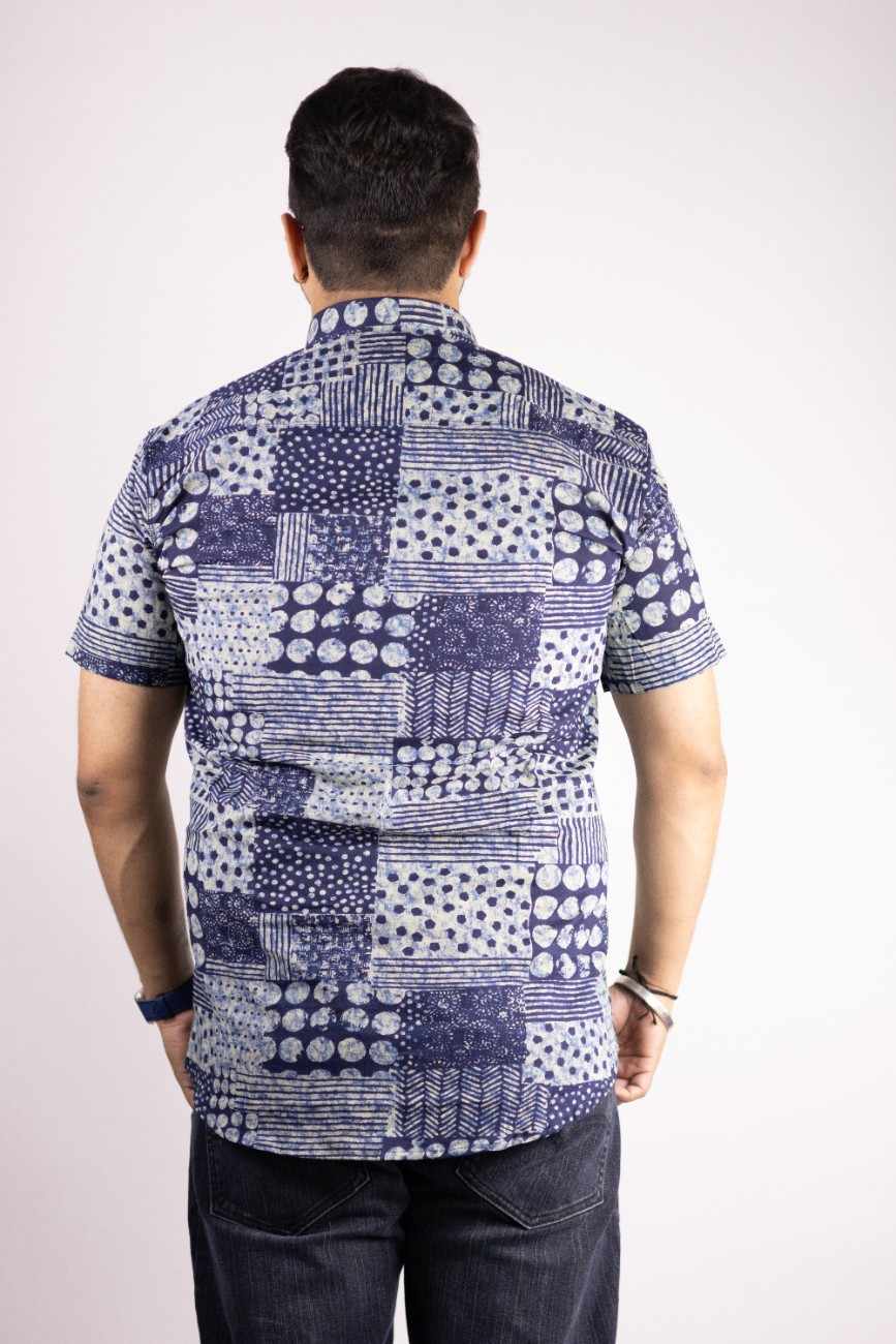 Home / Men / Western Wear /Shirts/ Blue Patchwork Print Half Sleeves Shirt