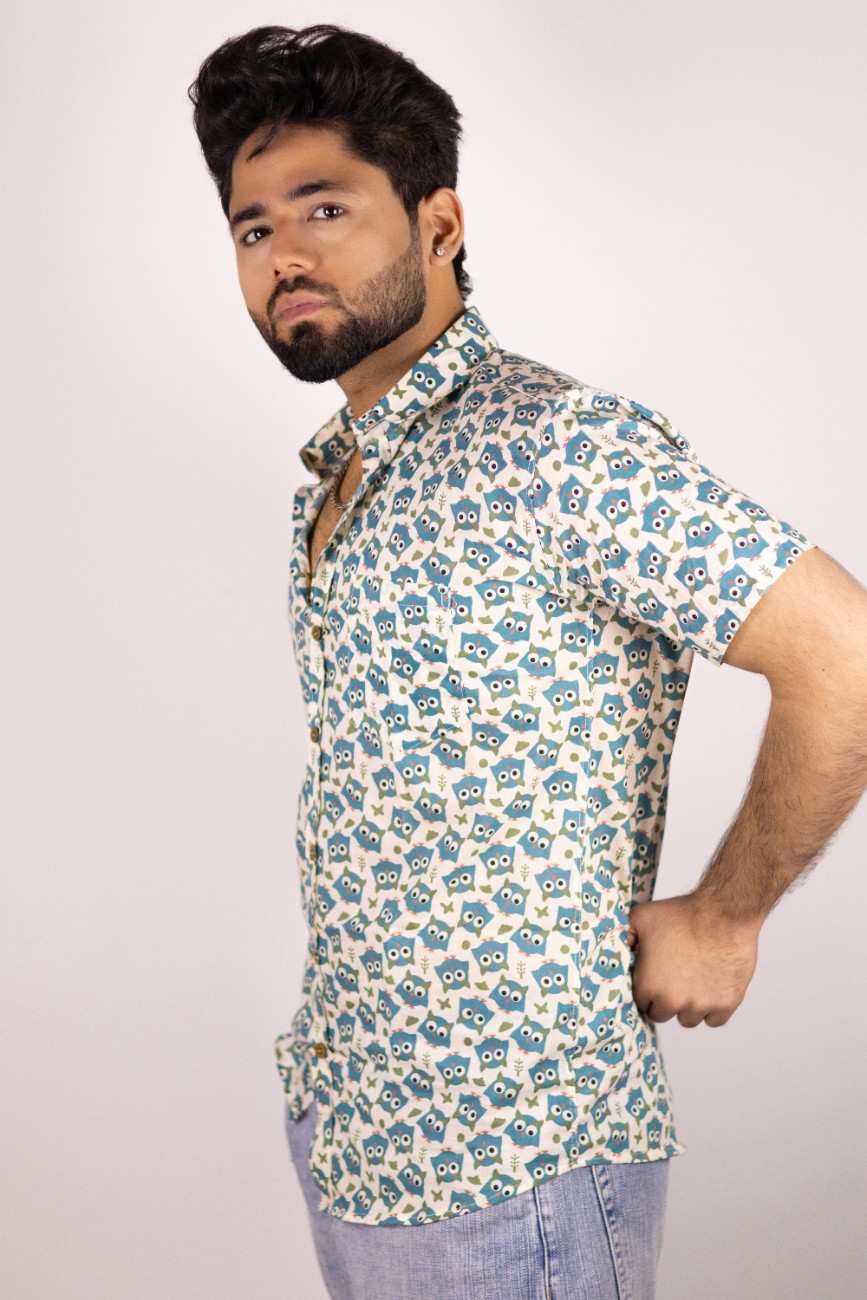 Home / Men / Western Wear /Shirts/ Colourplay Owl Print Half Sleeves Shirt