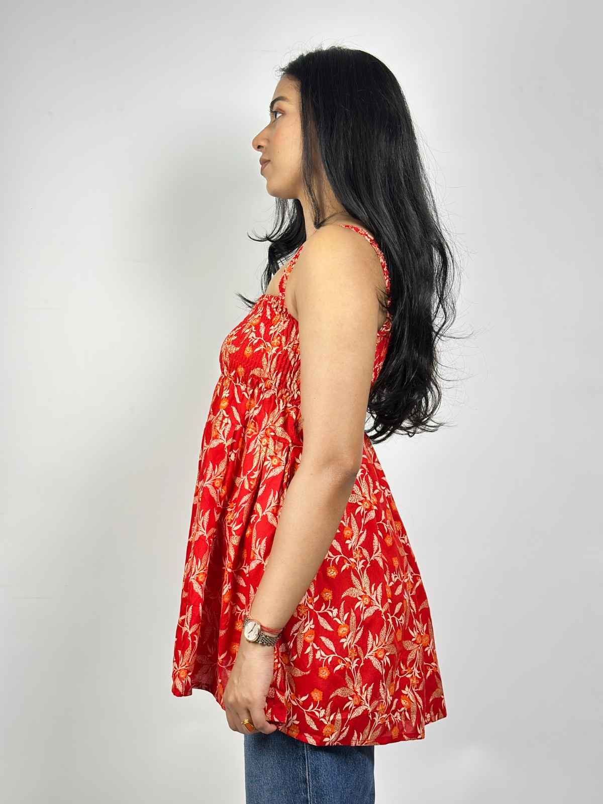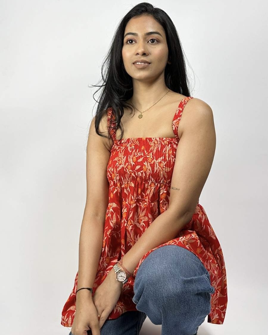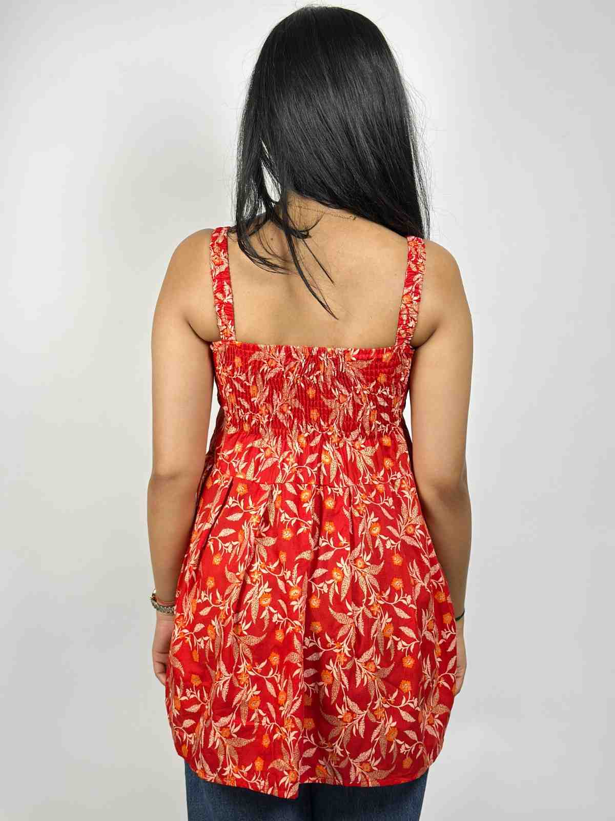 Cotton screen-printed cut-sleeves free-size peplum top. It fits upto L size requirements. It has gathers for relaxation and style. Available in 3 more other colours.