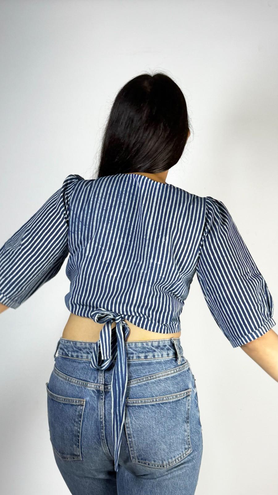 Batik print wrap crop top. This is a free-size top that can fit XS-S-M-L sizes. It has half puffed sleeves. It can be tied on the back but can be tied in the front depending on your styling taste and purpose of wear.