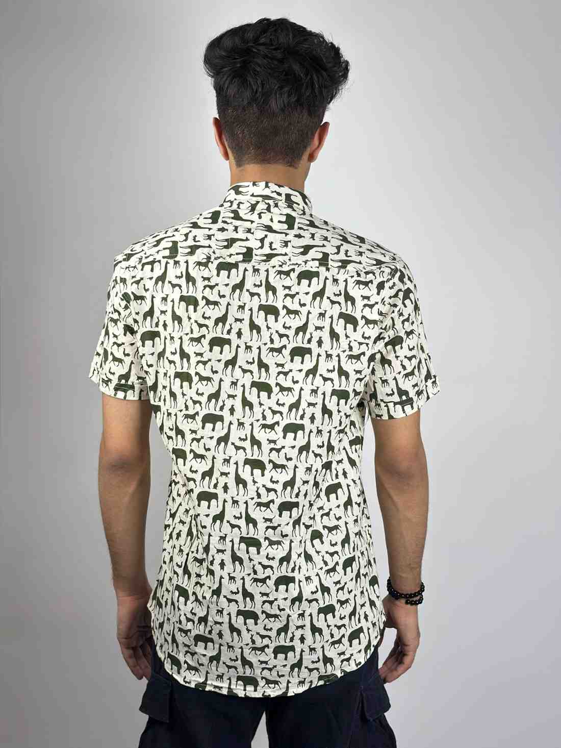 Home / Men / Western Wear /Shirts/ Green Animal Print Half Sleeves Shirt