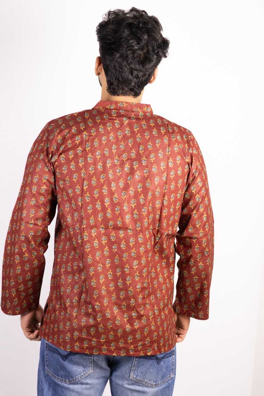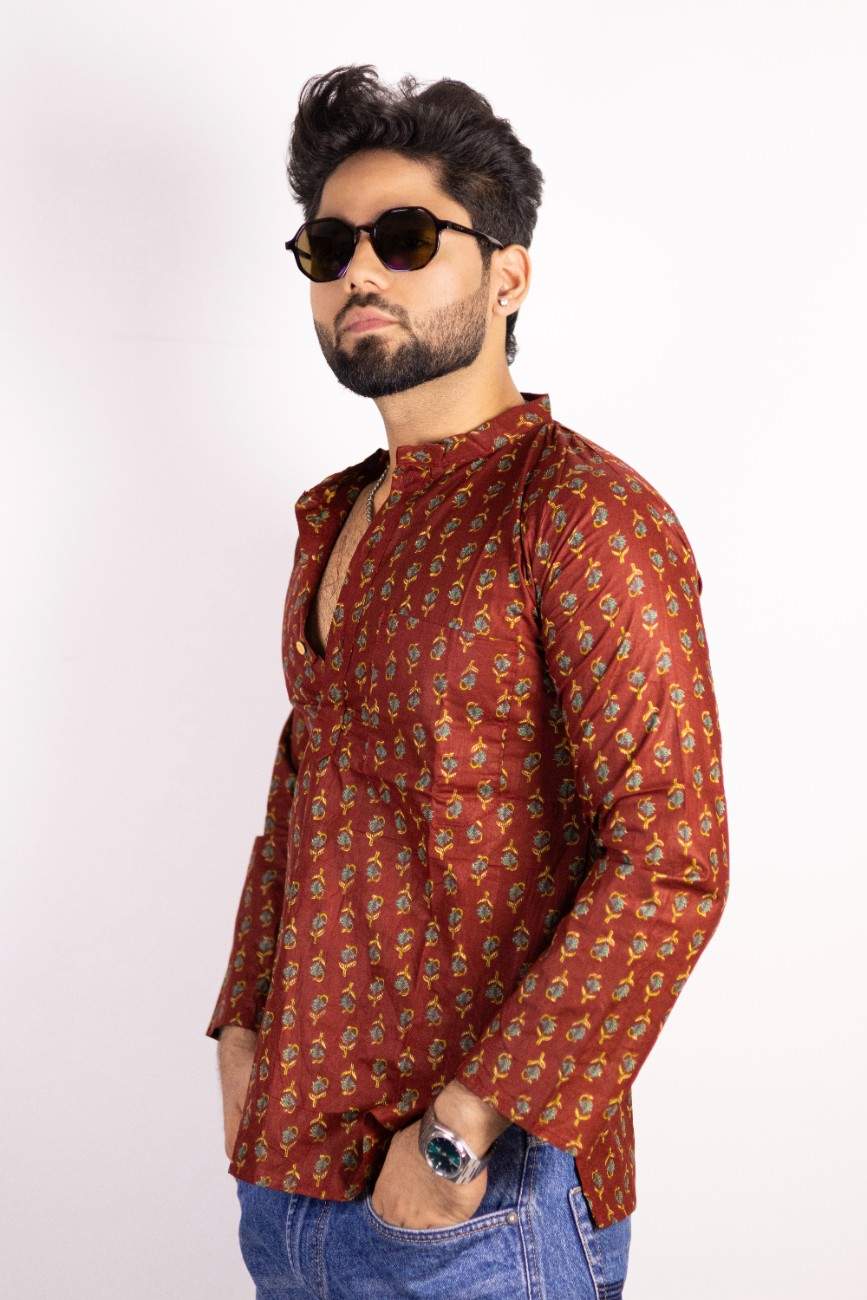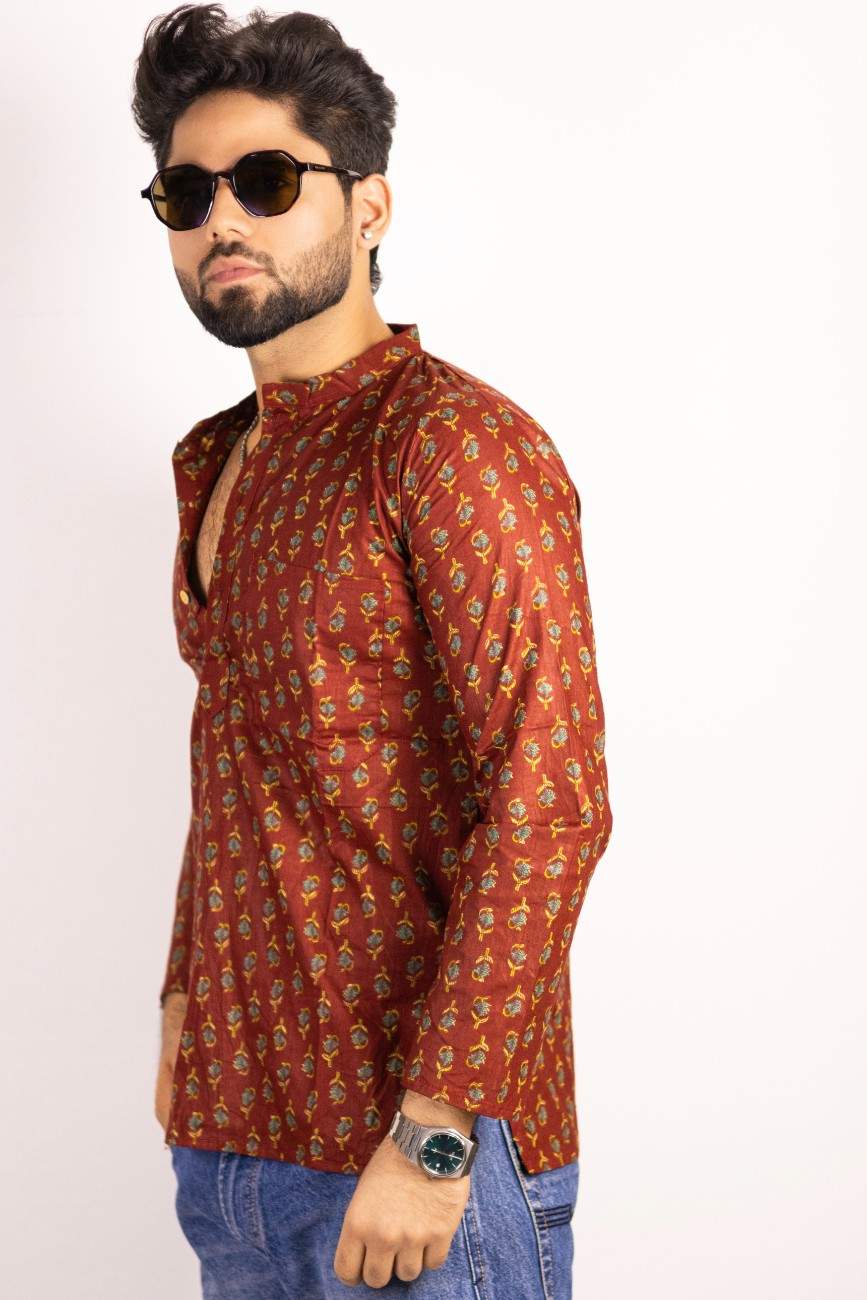 Home / Men / Ethnic Wear /Short Kurtas/ Rust Colored Floral Print Short Kurta
