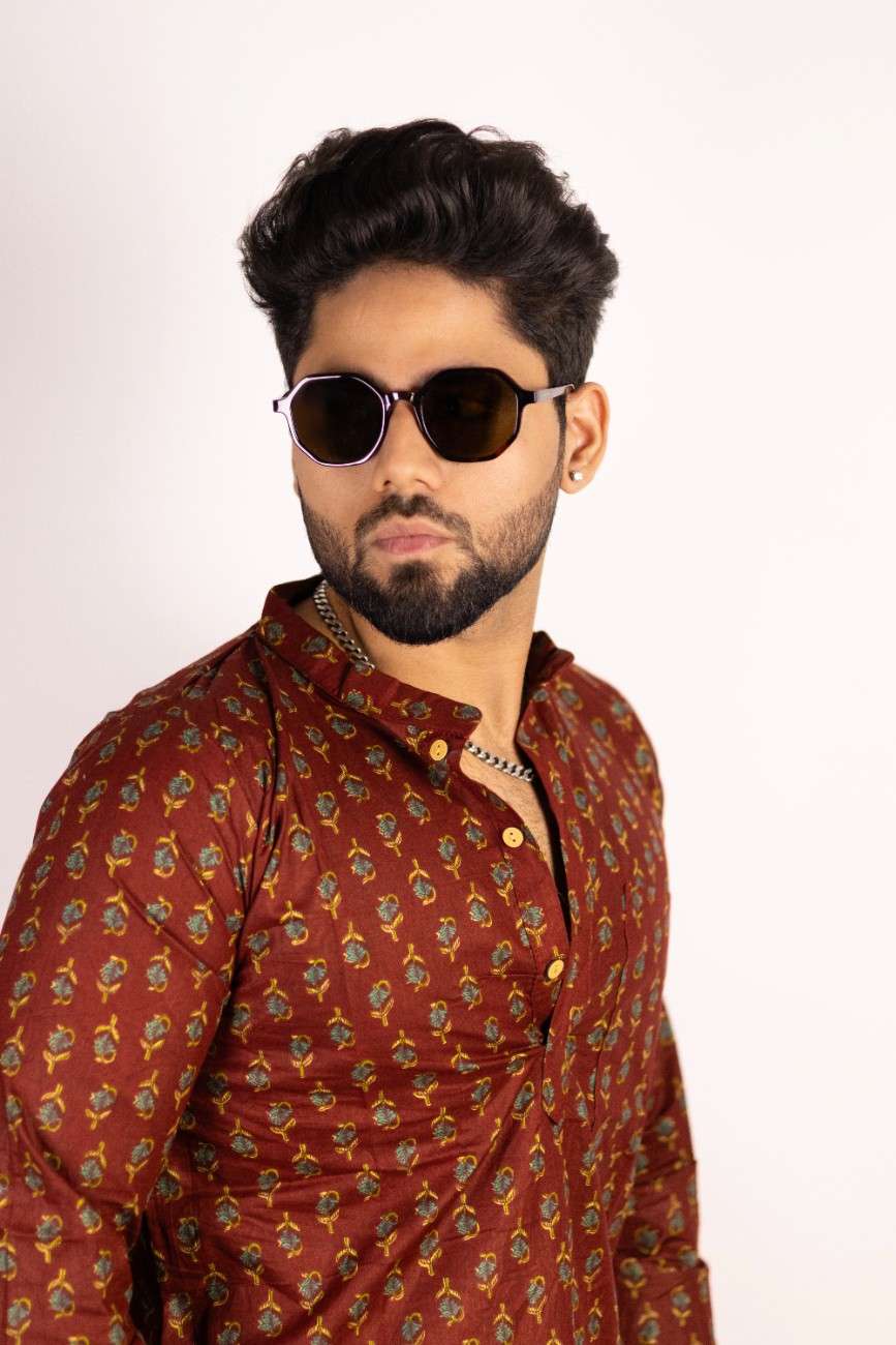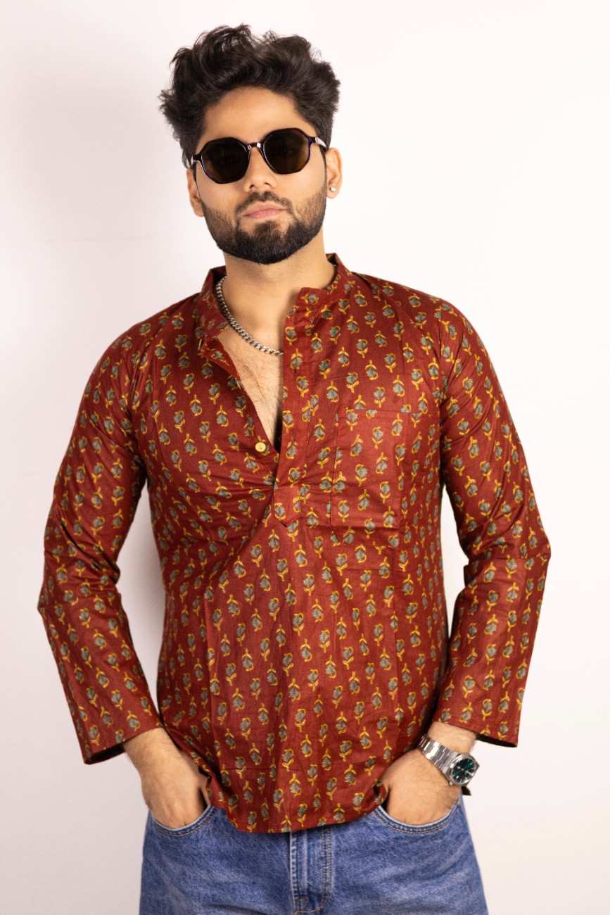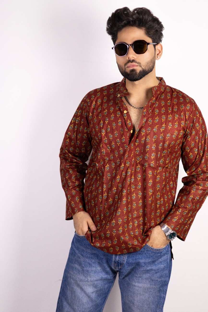 Home / Men / Ethnic Wear /Short Kurtas/ Rust Colored Floral Print Short Kurta