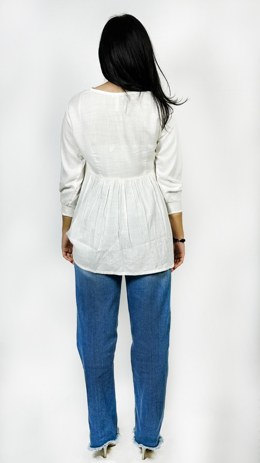 Home / Women / Indie Wear /Tops & Tunics/ White Linen Gathers Top