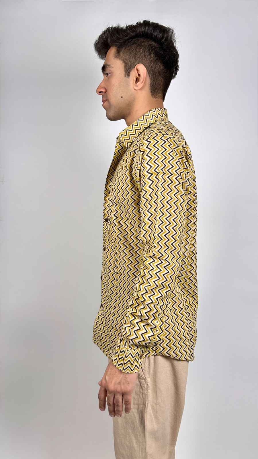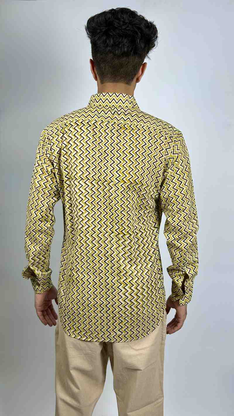 Home / Men / Western Wear /Shirts/ Zig-Zag Yellow Full Sleeves Shirt