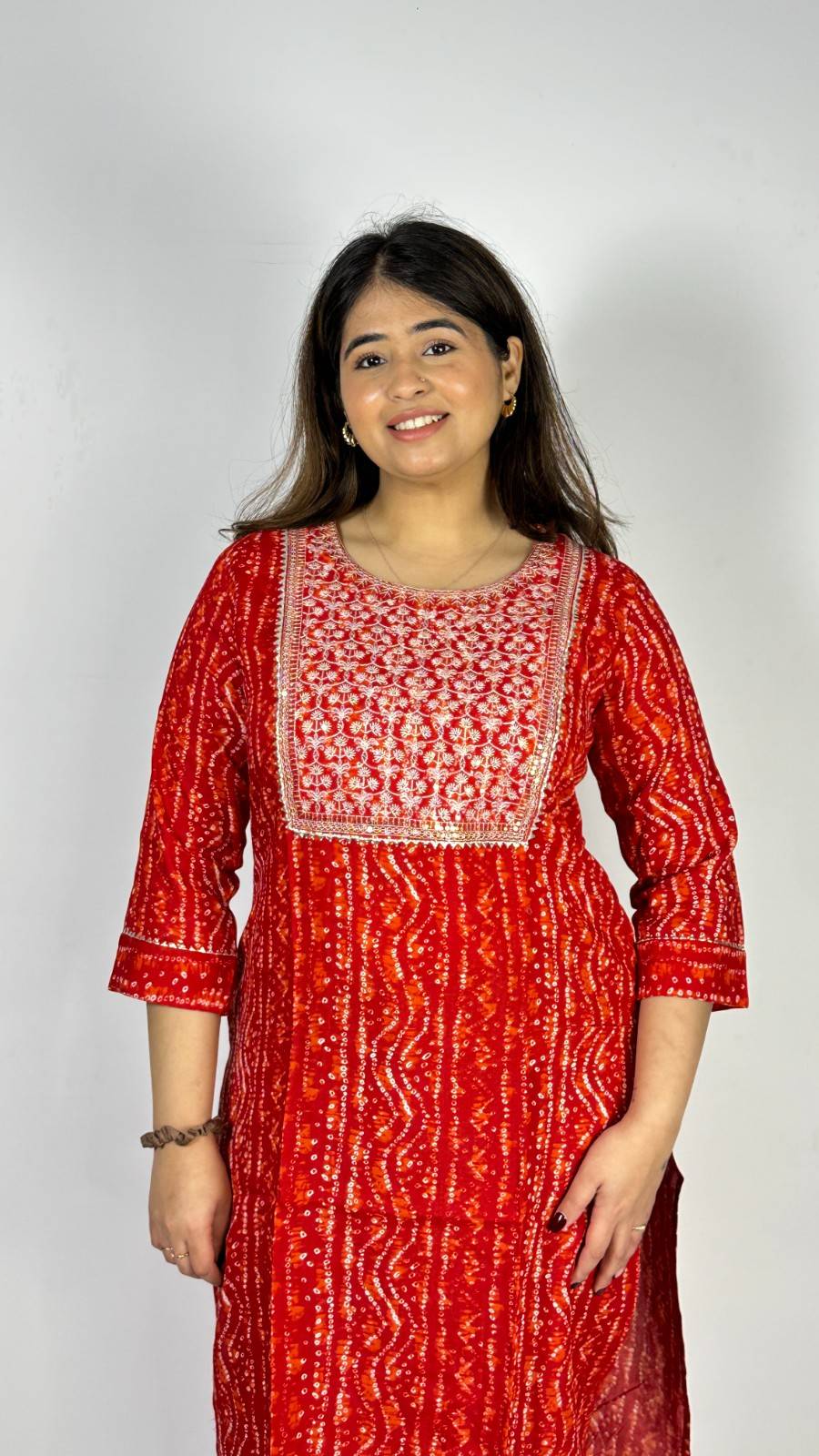 Home / Women / Ethnic Wear /Kurtis/ Embellished Red Kurti