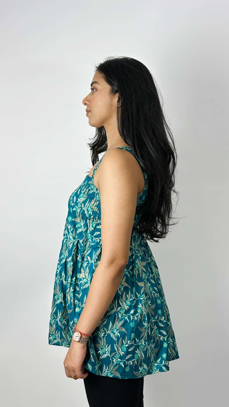 Cotton screen-printed cut-sleeves free-size peplum top. It fits upto L size requirements. It has gathers for relaxation and style. Available in 3 more other colours.