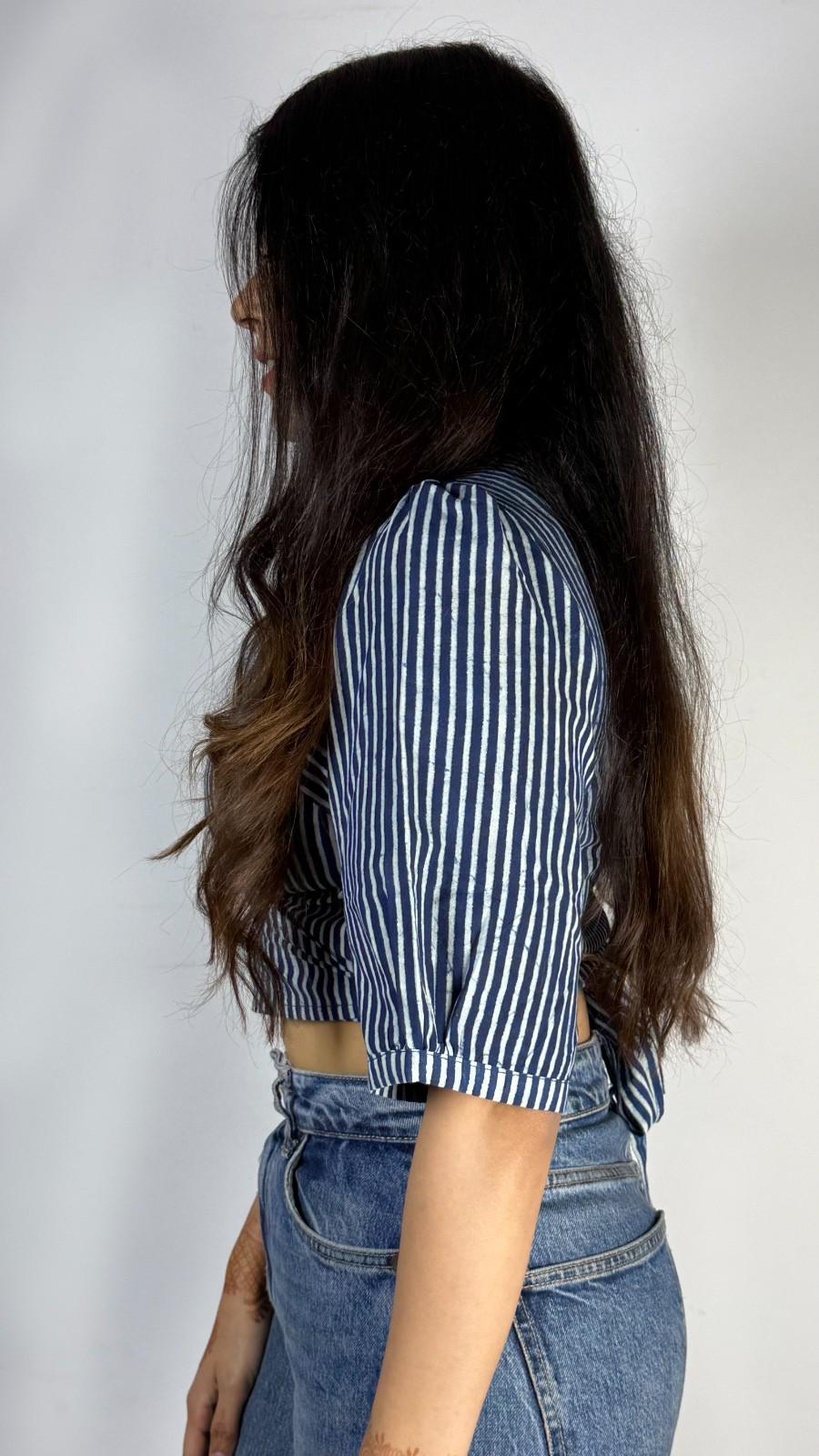Batik print wrap crop top. This is a free-size top that can fit XS-S-M-L sizes. It has half puffed sleeves. It can be tied on the back but can be tied in the front depending on your styling taste and purpose of wear.