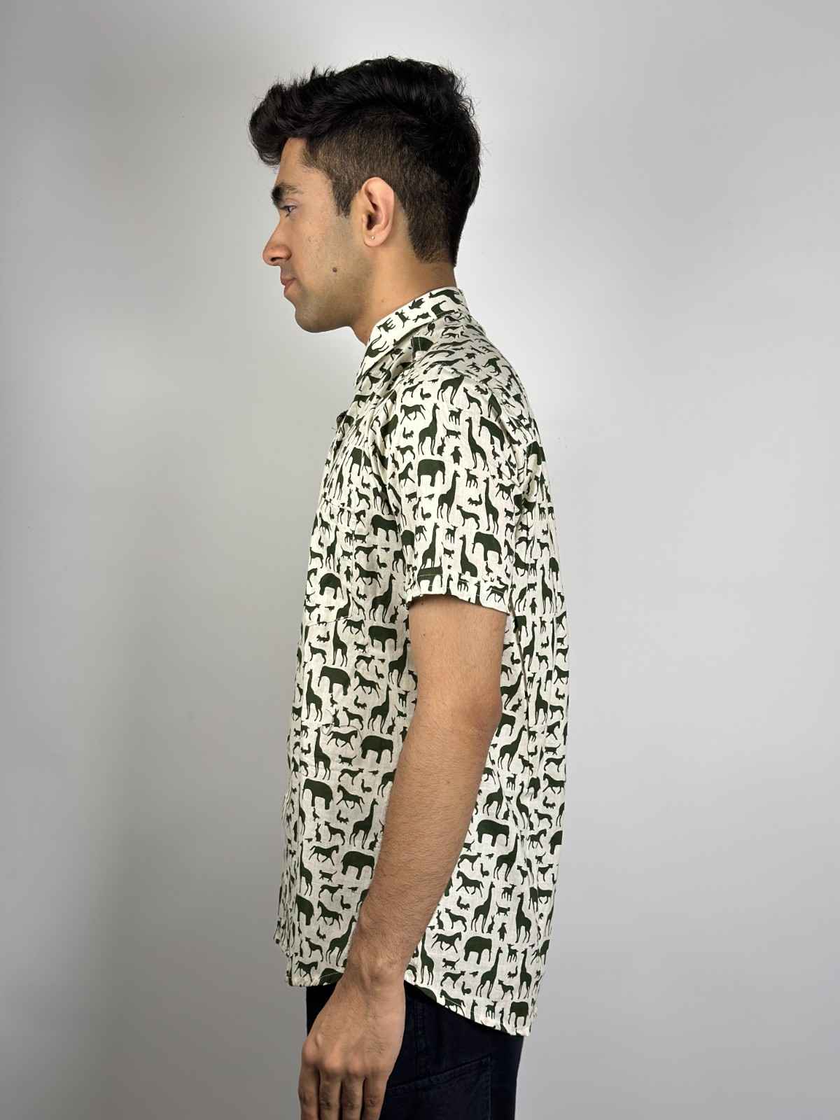 Home / Men / Western Wear /Shirts/ Green Animal Print Half Sleeves Shirt