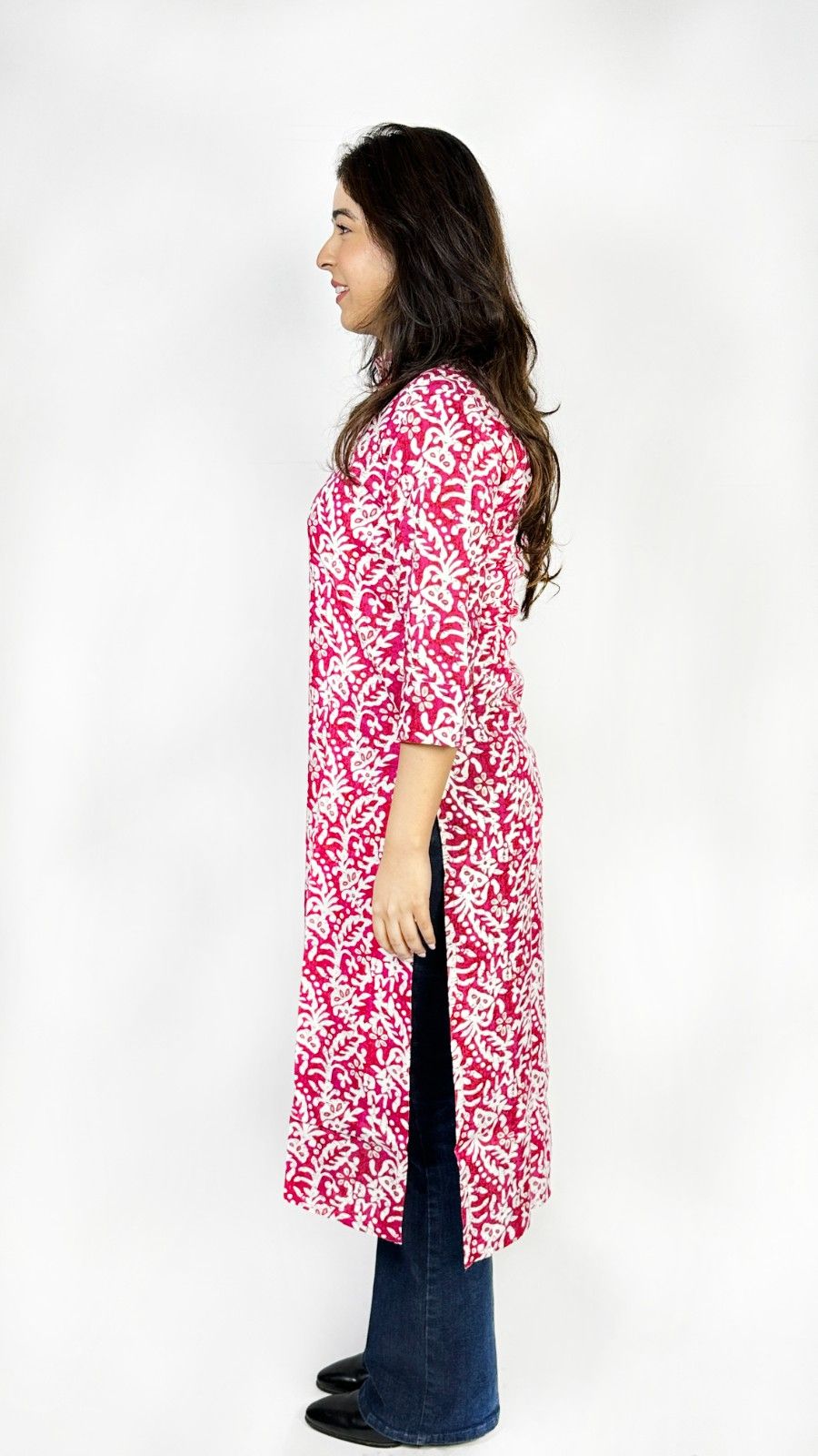 Home / Women / Ethnic Wear /Kurtis/ Leafy Pink Kurti