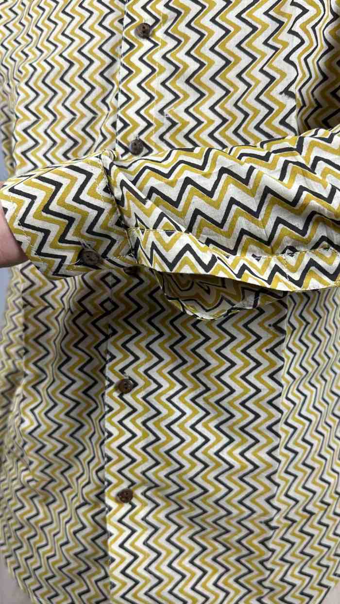 Full Sleeves Hand Block Printed Cotton Shirt with a chest pocket. Well suited for summer season.