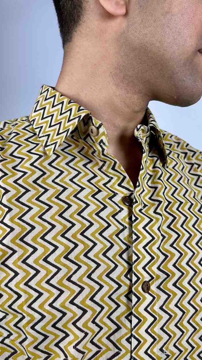 Home / Men / Western Wear /Shirts/ Zig-Zag Yellow Full Sleeves Shirt